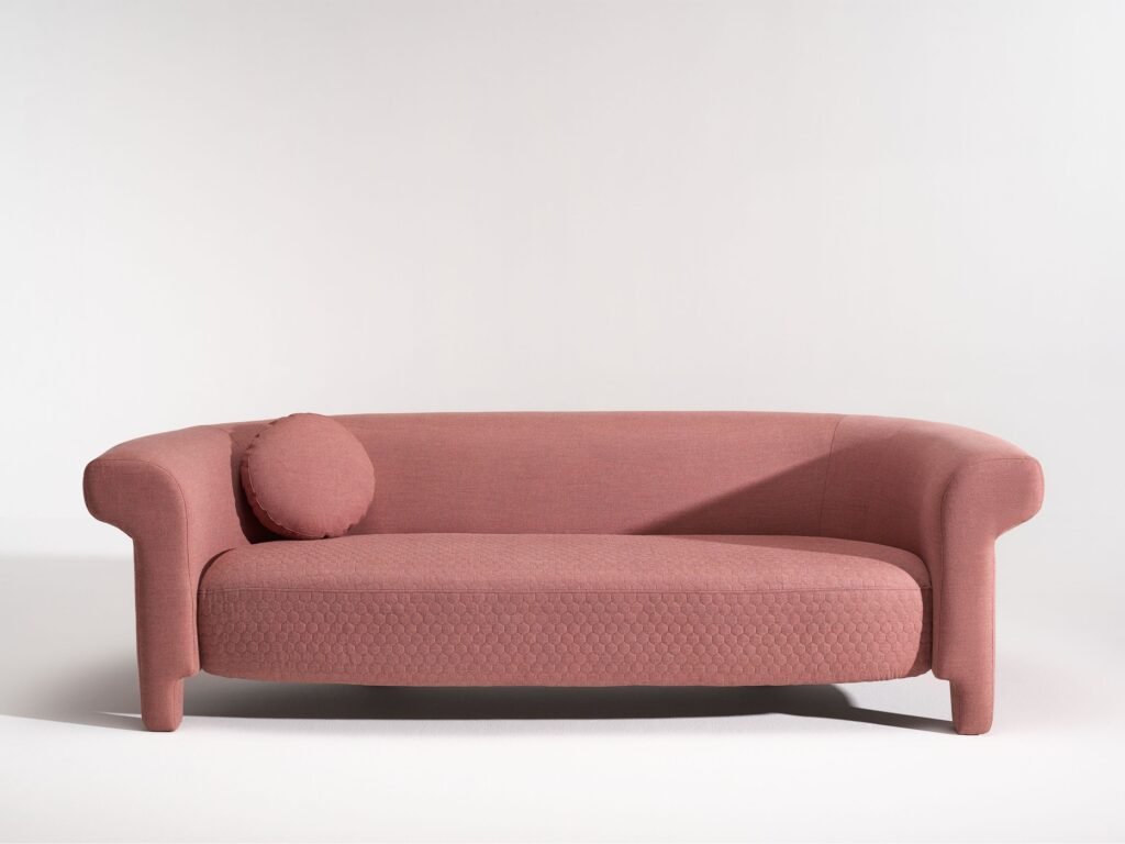 "CAPRINI Blending sculptural curves with modern comfort, this sofa adds elegance and warmth to any interior. Soft cushions provide deep, lasting comfort and timeless style."